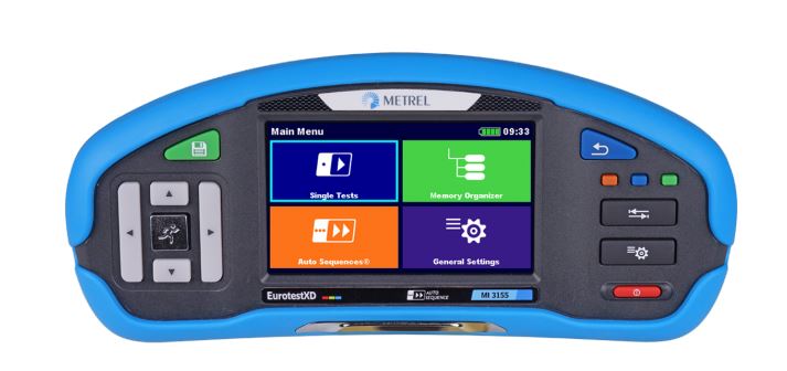 El MI 3155 EurotestXD es el nuevo medidor multifunción estrella avanzado de Metrel. Está especialmente diseñado para el sector industrial y se diferencia del resto por su diseño ergonómico e interfaz de usuario muy intuitiva con un organizador de medidas y AUTO SECUENCIAS totalmente programables. Se controla con una gran pantalla táctil a color y cumple con las normas de funcionalidad (p.e. IEC/EN61557) y otras normativas de referencia para comprobaciones (p.e. IEC/EN/HD 60364-4- 41,…) aplicables a instrumentos de medición de corriente TRMS, pruebas de diferencialesy de impedancia de línea y bucle con 3 (y 4) hilos y mediciones de resistencia de tierra. Además el instrumento realiza muchas más pruebas y mediciones, como la monitorización de la tensión on-line, la comprobacion de la secuencia de las fases, la prueba de varistores, el cálculo PI/DAR, medidas de luminosidad, comprobación del tiempo de descarga, mediciones ISFL, pruebas IMD e inspecciones funcionales y visuales.